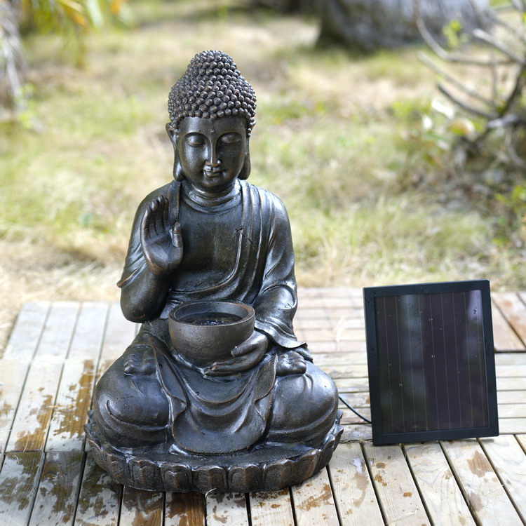 Made of durable, lightweight and maintenance-free polyresin with a weathered stone finish, this solar fountain feature is a great decorative piece for both outdoor and indoor area. Comes with a set of solar panel with a rechargeable Lithium battery, a water pump and a ground holder, just easy installation needed to set it up. And you'll have a beautiful water fountain in your garden!